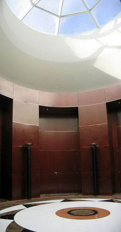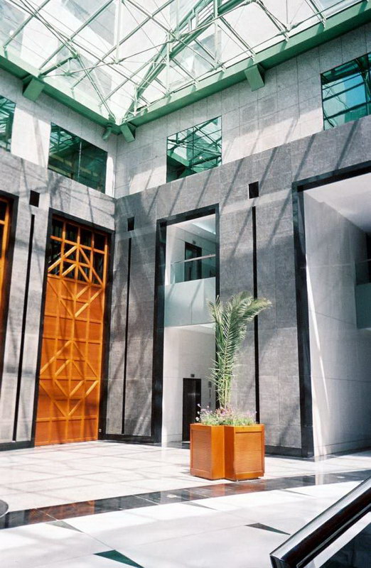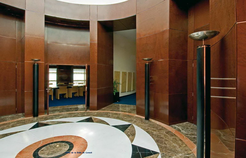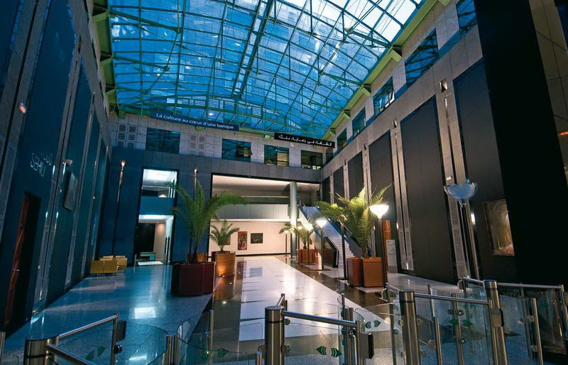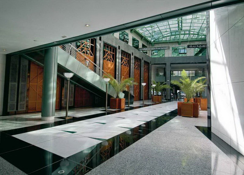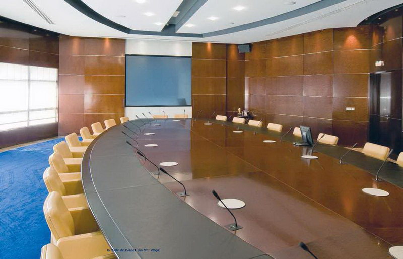 Aménagement du siège de la Banque Internationale Arabe de Tunisie, première banque privée du pays, 30.000 m² de bureaux situés à Tunis sur la prestigieuse avenue Bourguiba : espaces d’accueil, auditorium, étage de direction, salle du conseil, salles à manger privatives, cafétéria.