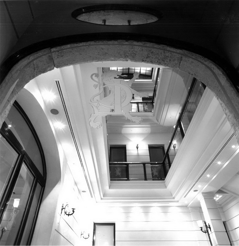 Réhabilitation du siège du Crédit Lyonnais à Budapest : accueil, circulations, salle des coffres, salle de conférence.