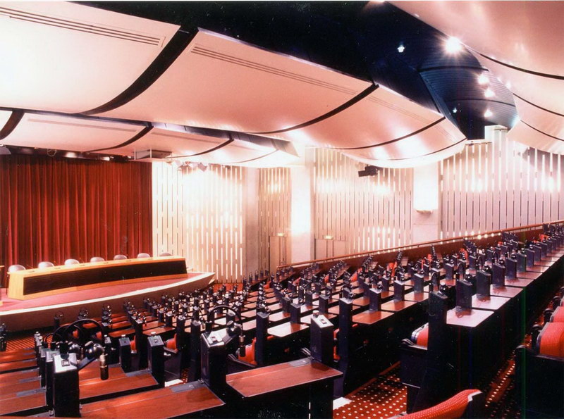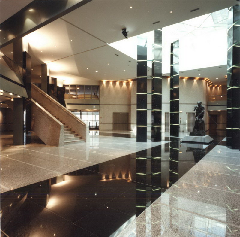 Chambre Syndicale des Banques Populaires, siège "Le Ponant de Paris", dessiné par l’architecte Olivier-Clément Cacoub. Aménagement du hall, des circulations, de deux auditoriums.