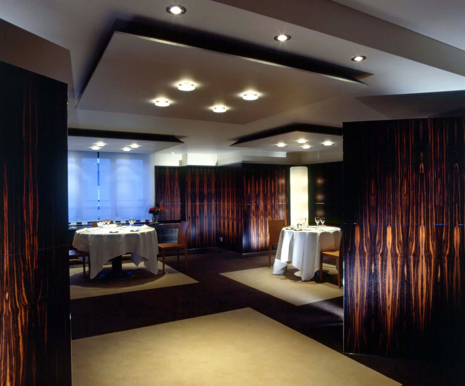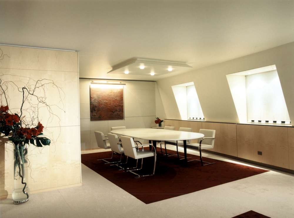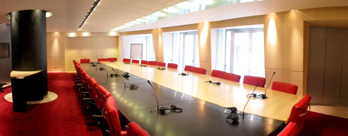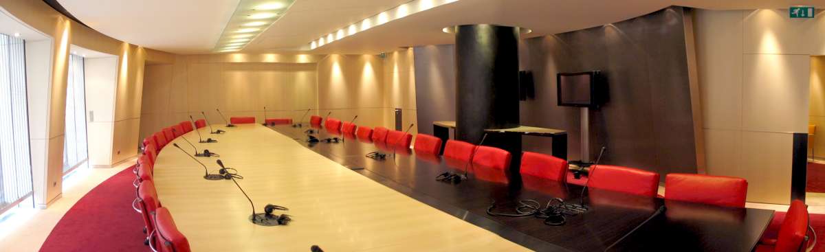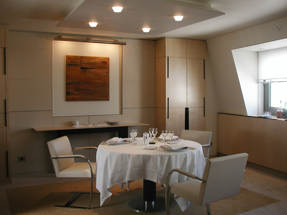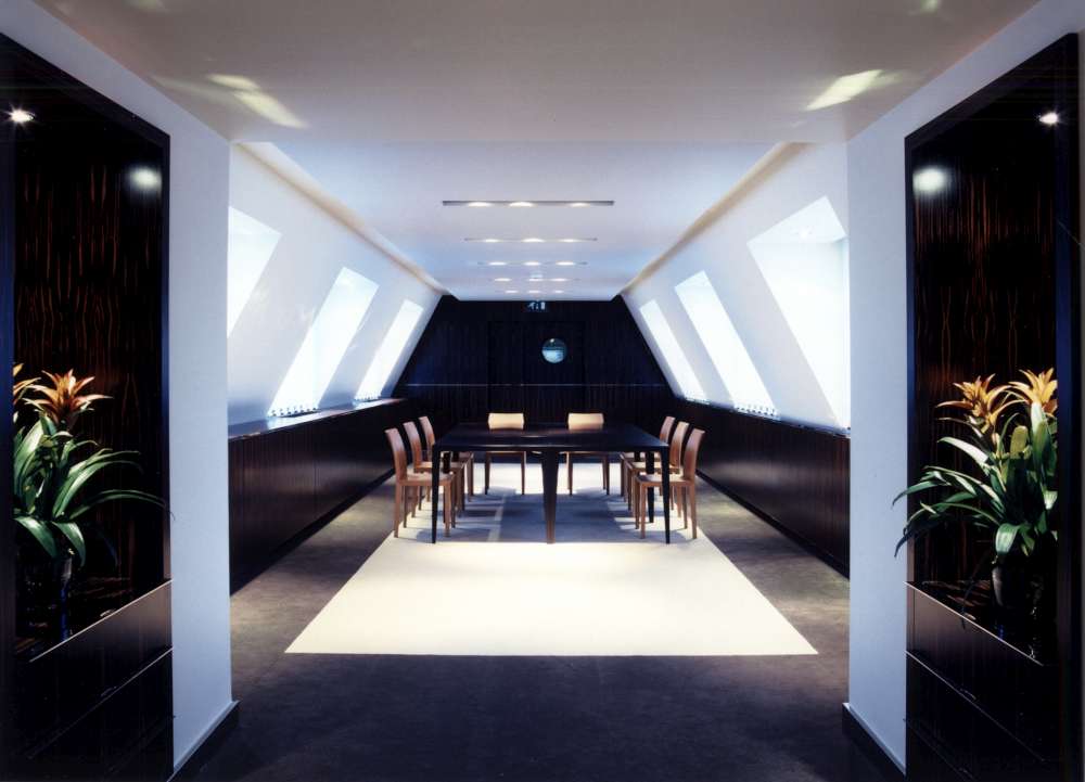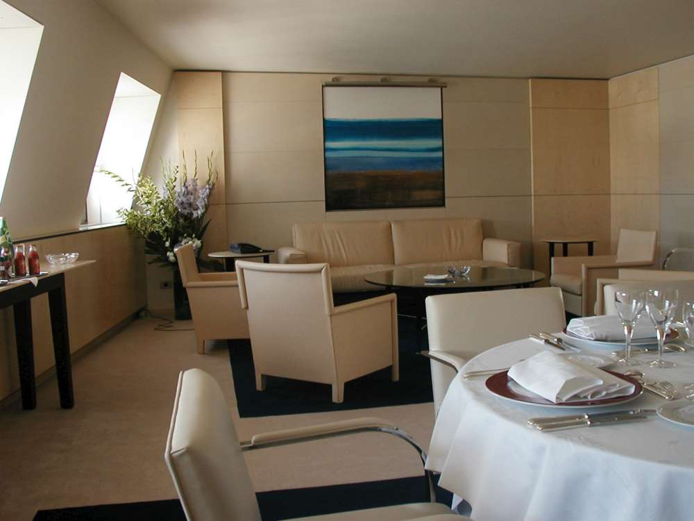 Aménagement du hall d'accueil, des circulations et de la salle du conseil au rez-de-chaussée ; de la cafétéria et du restaurant d'entreprise au premier sous-sol ; d'un espace Lounge et de salles à manger privées à l'étage de direction.